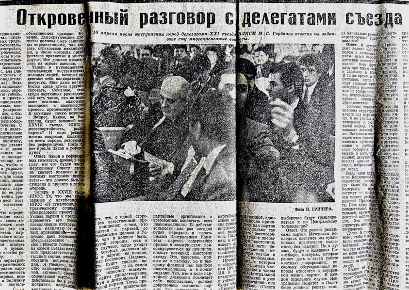 Если вы меня спросите, откуда у меня вдруг взялась “Комсомольская правда” за 12 апреля 1990 года со стенограммой ответов Горбачева на вопросы делегатов XXI-го съезда ВЛКСМ, то у меня есть честный ответ — понятия не имею. Но прочесть интересно.