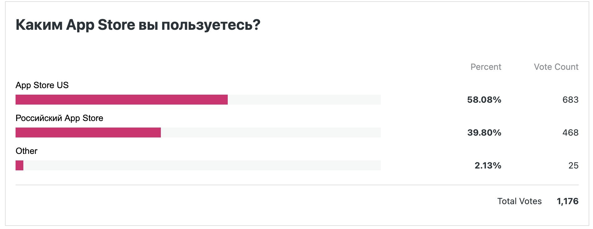 В 2012 году, практически перед открытием AppStore я даже опрос проводил “Кто каким магазином пользуется?”. Результаты даже оказались живы в интернете.